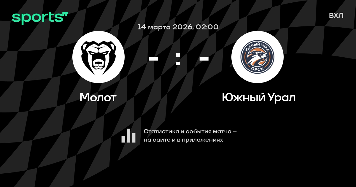 В предстоящем матче в рамках турнира ВХЛ пройдет встреча команд Молот - Южный Урал в городе на стадионе Molot.