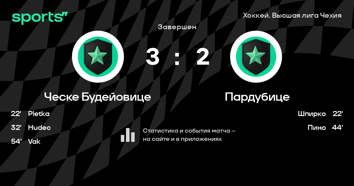 В прошедшем матче в рамках турнира Хоккей. Высшая лига Чехия состоялась встреча команд Ческе Будейовице - Пардубице