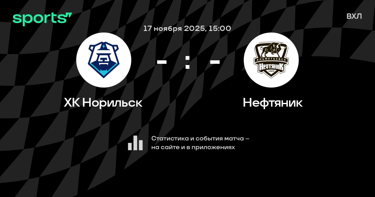 В предстоящем матче в рамках турнира ВХЛ пройдет встреча команд ХК Норильск - Нефтяник в городе на стадионе Dvorets Sporta Arktika.