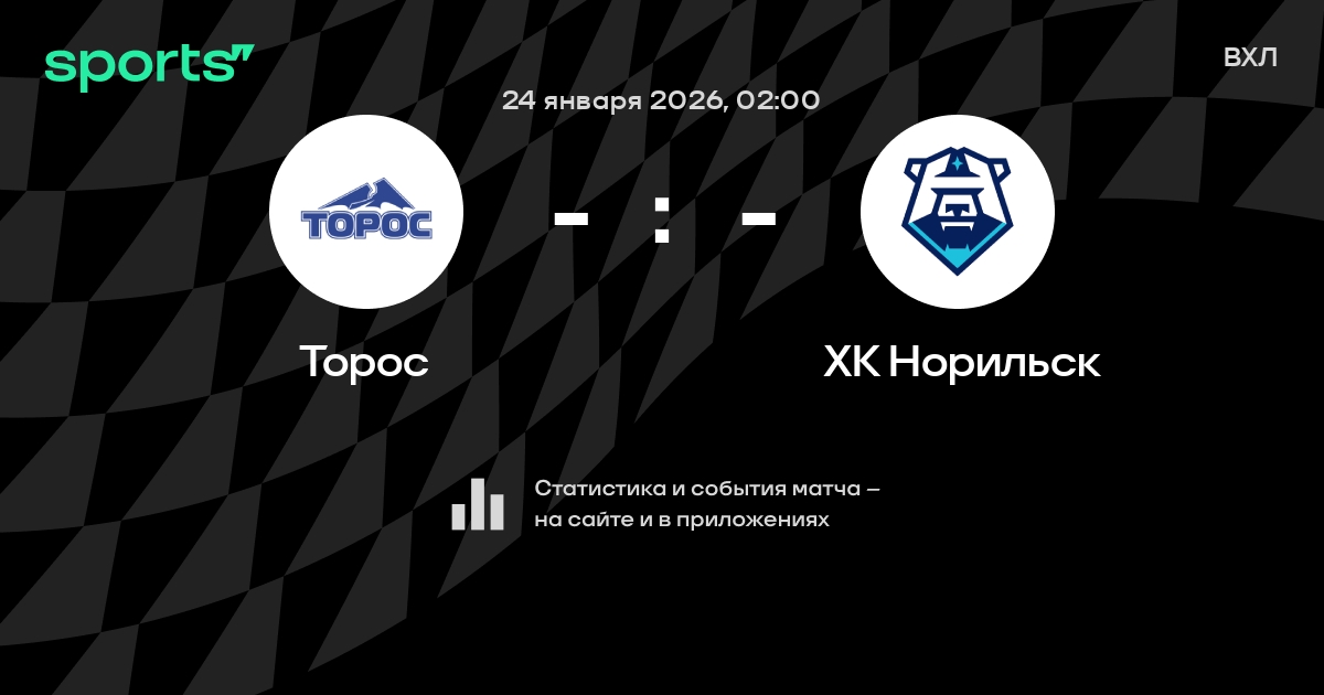 В предстоящем матче в рамках турнира ВХЛ пройдет встреча команд Торос - ХК Норильск в городе на стадионе Ledovyy Dvorets.