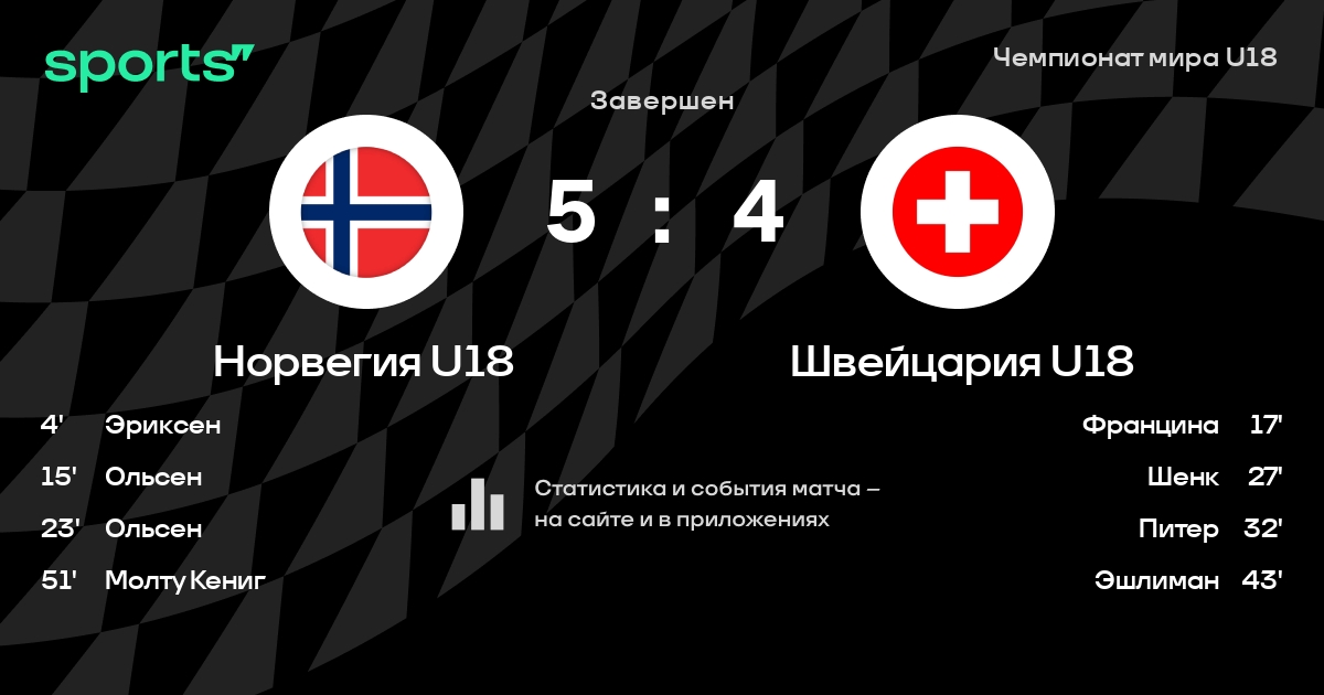Как прошел матч, смотрите в текстовой трансляции Норвегия U18 - Швейцария U18 на Sports.ru