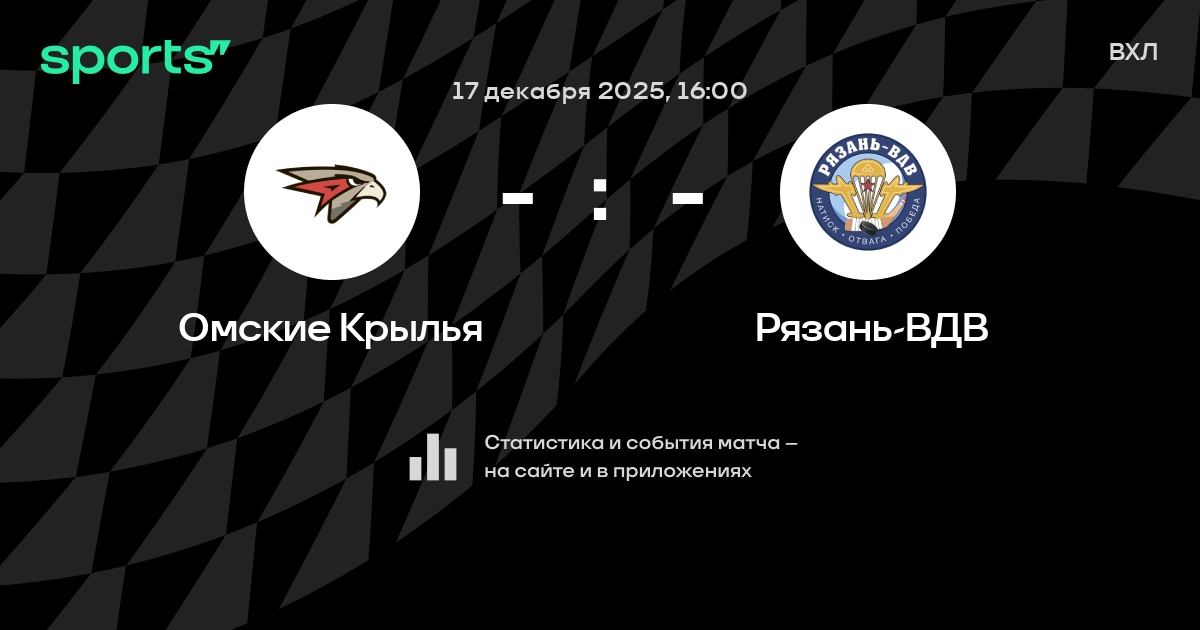 В предстоящем матче в рамках турнира ВХЛ пройдет встреча команд Омские Крылья - Рязань-ВДВ в городе на стадионе Avangard Hockey Academy.