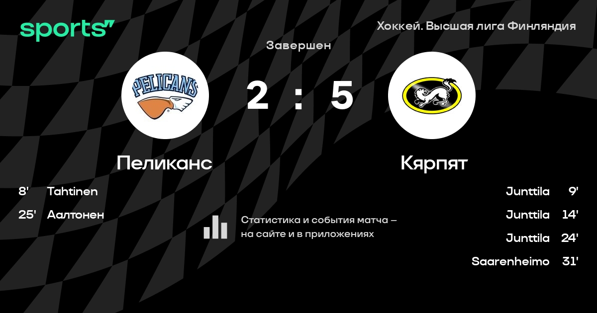 В прошедшем матче в рамках турнира Хоккей. Высшая лига Финляндия состоялась встреча команд Пеликанс - Кярпят