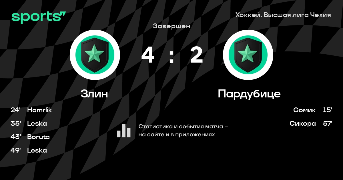 В прошедшем матче в рамках турнира Хоккей. Высшая лига Чехия состоялась встреча команд Злин - Пардубице