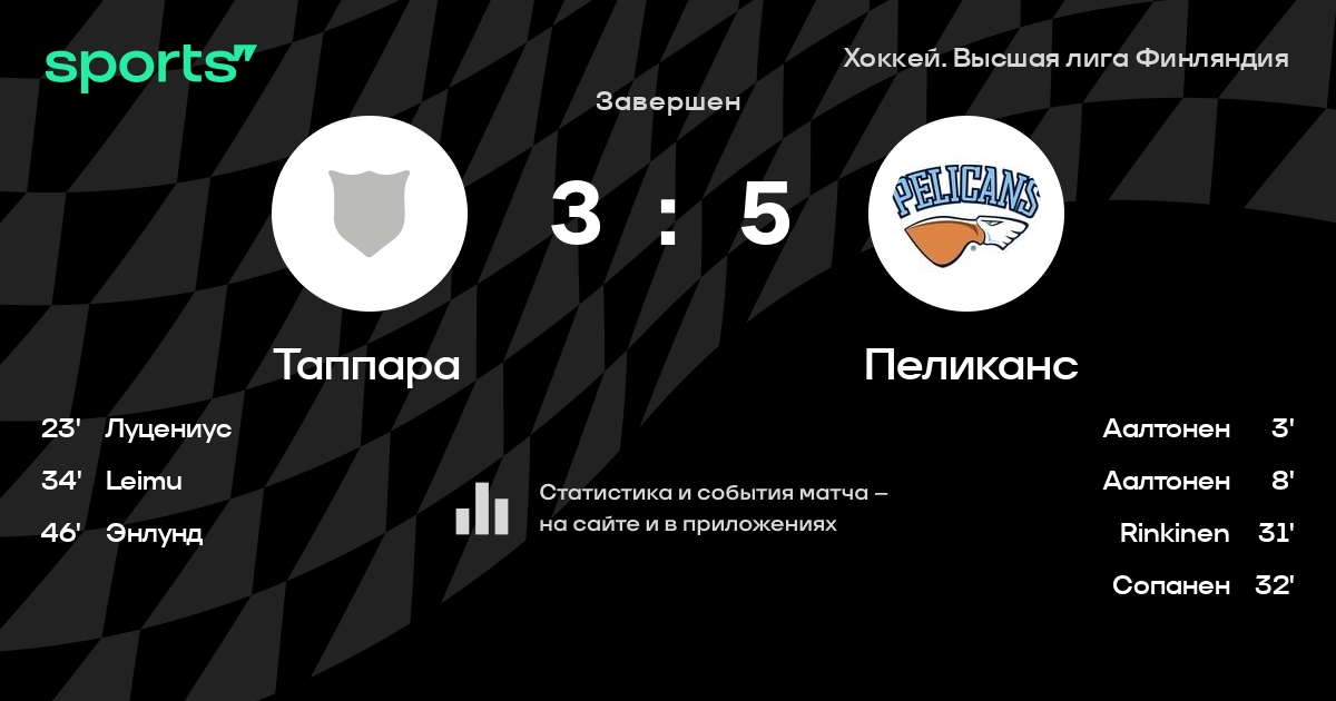 В прошедшем матче в рамках турнира Хоккей. Высшая лига Финляндия состоялась встреча команд Таппара - Пеликанс