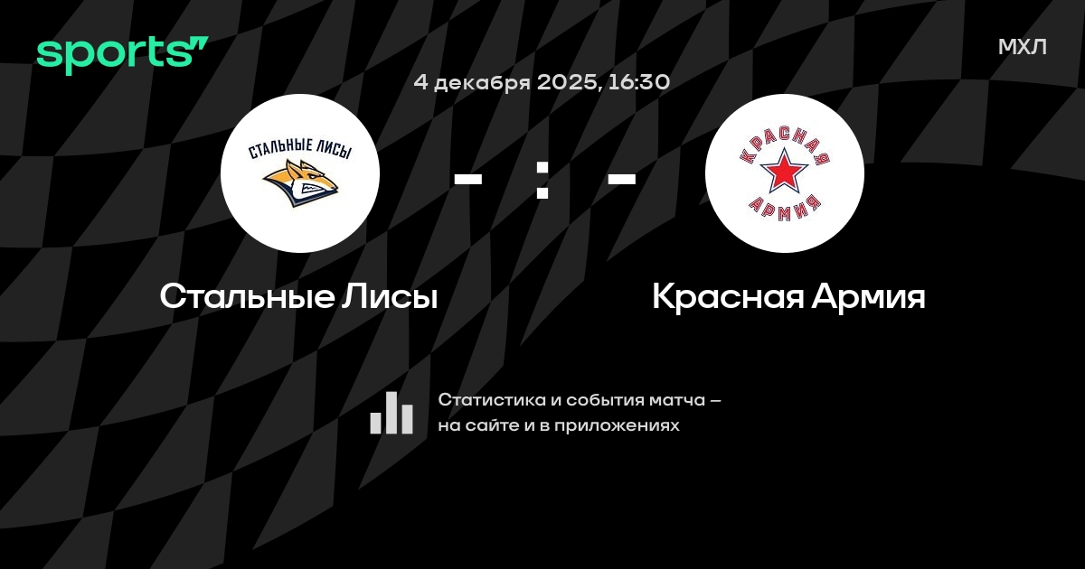 В предстоящем матче в рамках турнира МХЛ пройдет встреча команд Стальные Лисы - Красная Армия в городе Магнитогорск (Россия) на стадионе Арена-Металлург (вместимость - 7700).