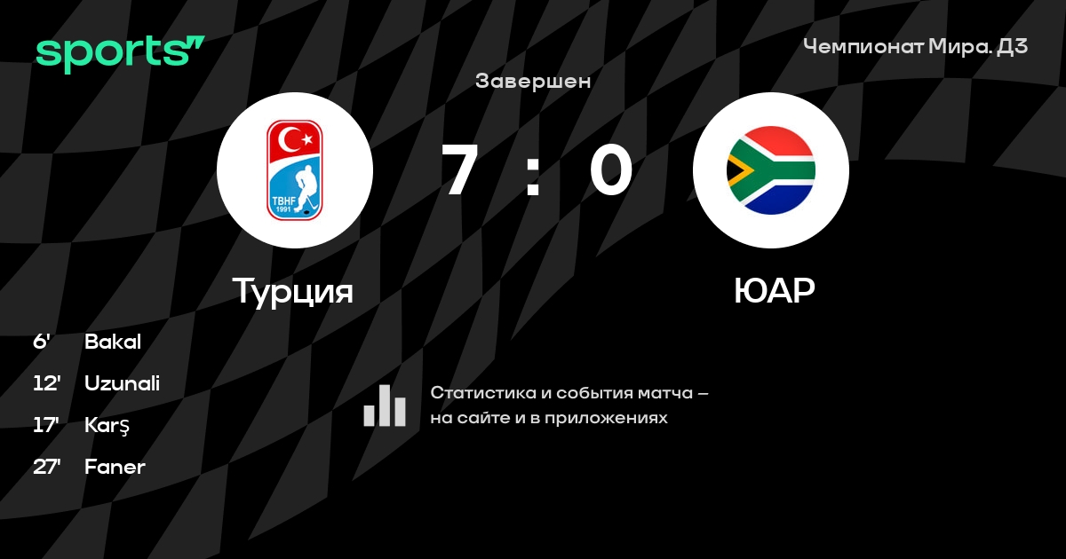 В прошедшем матче в рамках турнира Чемпионат Мира. Д3 состоялась встреча команд Турция - ЮАР в городе на стадионе Zeytinburnu Buz Pisti