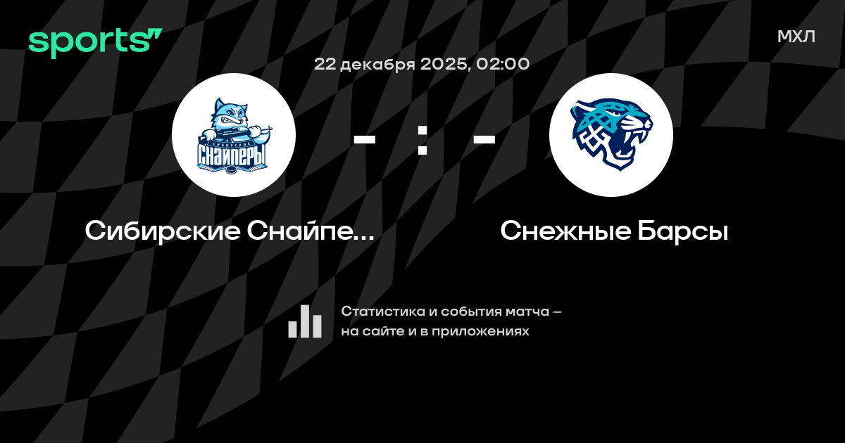 В предстоящем матче в рамках турнира МХЛ пройдет встреча команд Сибирские Снайперы - Снежные Барсы в городе Новосибирск (Россия) на стадионе Арена-Сибирь (вместимость - 10587).