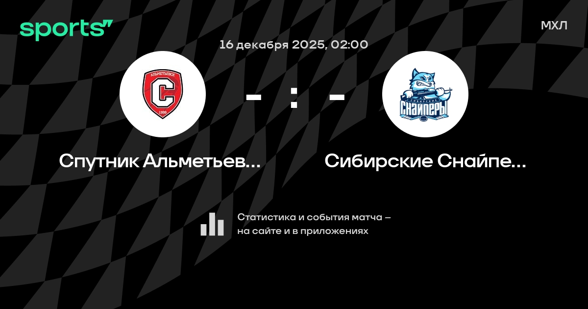 В предстоящем матче в рамках турнира МХЛ пройдет встреча команд Спутник Альметьевск - Сибирские Снайперы в городе на стадионе Dvorets Sporta Yubileynyy.