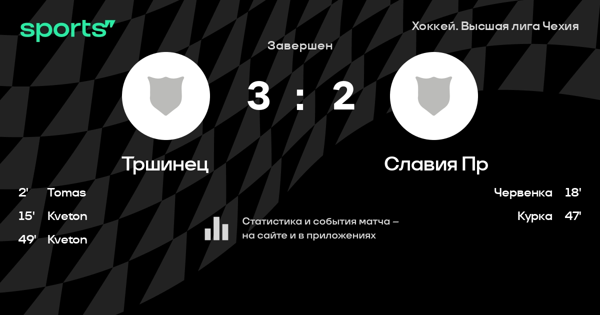 В прошедшем матче в рамках турнира Хоккей. Высшая лига Чехия состоялась встреча команд Тршинец - Славия Пр
