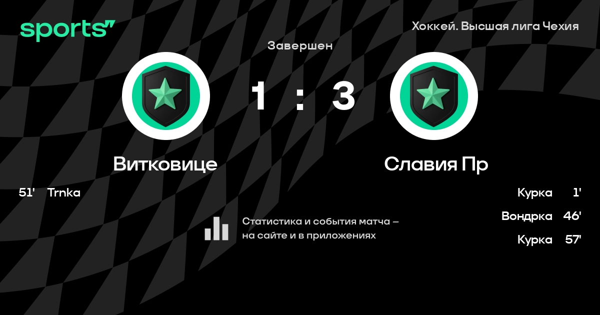 В прошедшем матче в рамках турнира Хоккей. Высшая лига Чехия состоялась встреча команд Витковице - Славия Пр