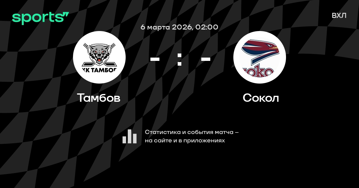 В предстоящем матче в рамках турнира ВХЛ пройдет встреча команд Тамбов - Сокол в городе на стадионе Sports Palace Crystal.