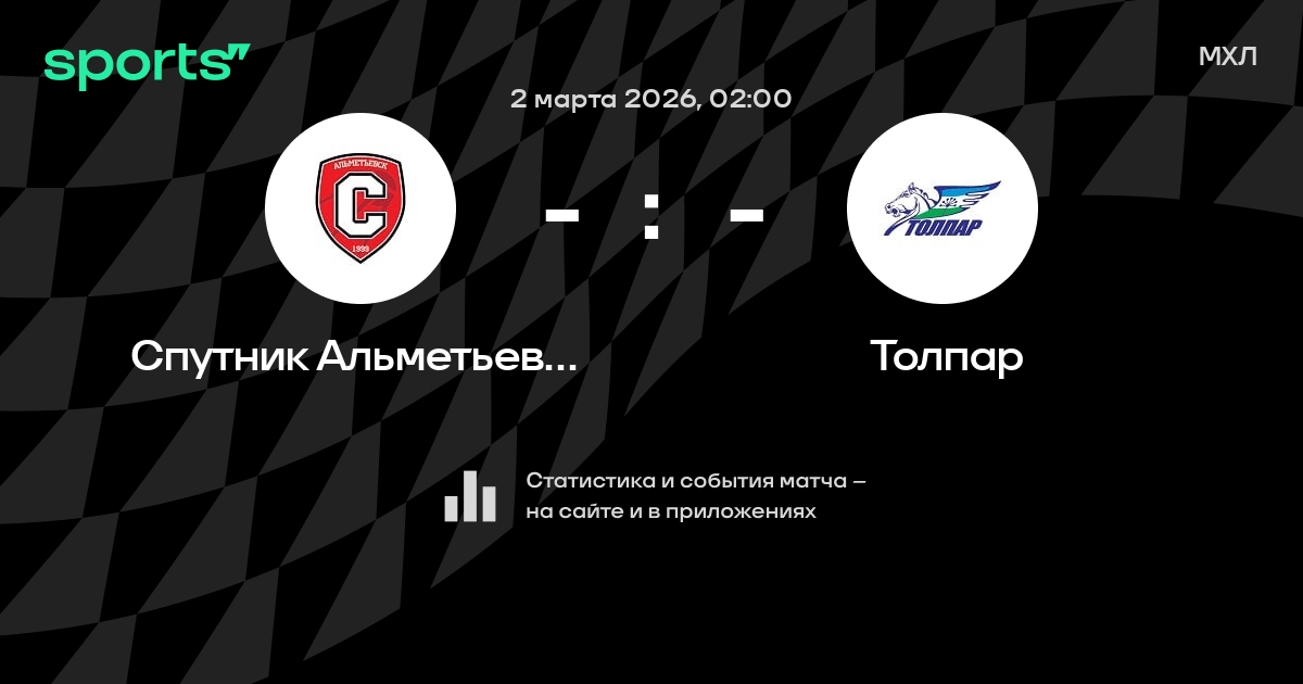 В предстоящем матче в рамках турнира МХЛ пройдет встреча команд Спутник Альметьевск - Толпар в городе на стадионе Dvorets Sporta Yubileynyy.