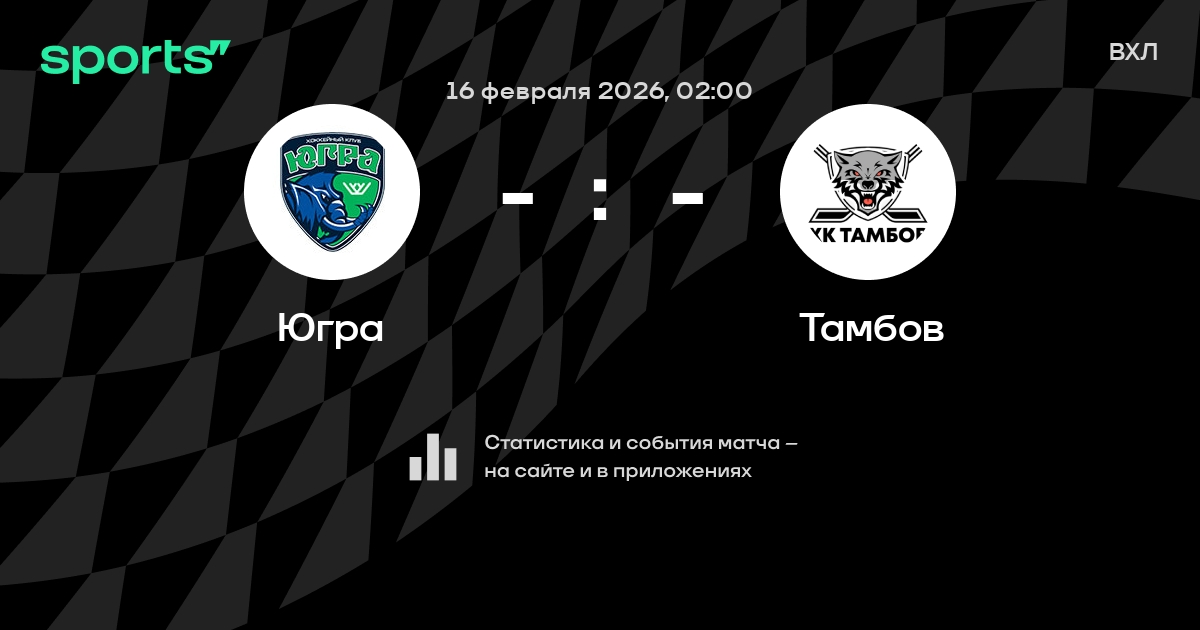 В предстоящем матче в рамках турнира ВХЛ пройдет встреча команд Югра - Тамбов в городе на стадионе Arena-Yugra.