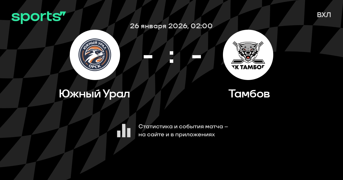 В предстоящем матче в рамках турнира ВХЛ пройдет встреча команд Южный Урал - Тамбов в городе на стадионе Ice Palace Yubileyny.