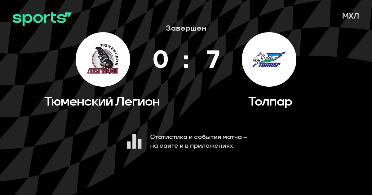 В прошедшем матче в рамках турнира МХЛ состоялась встреча команд Тюменский Легион - Толпар в городе на стадионе Ledovyy Dvorets Sporta Im. N.v. Parysheva