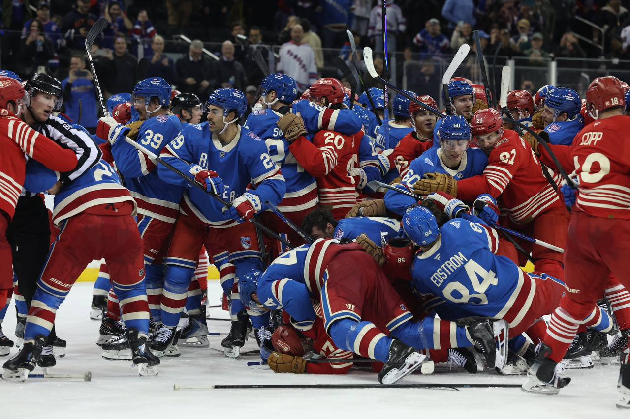 Буллитыч / Массовая потасовка «Детройта» и «Рейнджерс» после матча – самое эпичное фото сезона