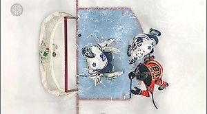 www.sports.ruВ этом моменте штанга сыграла за Павла Дацюка и не помогла вратарю Торонто Джеймсу Раймеру. Матч Торонто- Детройт состоялся сегодня ночью
