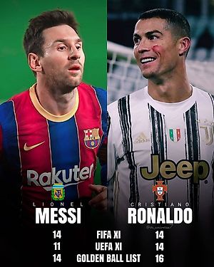 Количество попаданий #Лионель Месси и #Криштиану Роналду в команды года по версиям #УЕФА и #ФИФА, а также номинаций на #Золотой мяч!