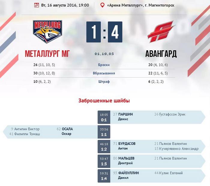 16 августа: #Металлург Мг - #Авангард 1:4