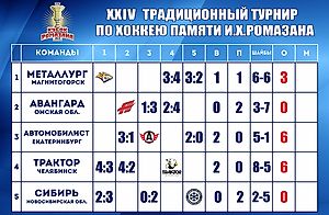 www.sports.ru«Трактор» – 6 очков (2 матча), «Автомобилист» – 3 (1), «Металлург» Мг – 3 (2), «Сибирь» – 0 (2), «Авангард» – 0 (1)