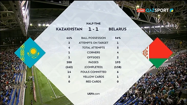 Казахстанцы больше фолили (14-6) и были впереди по желтым карточкам (2-1).