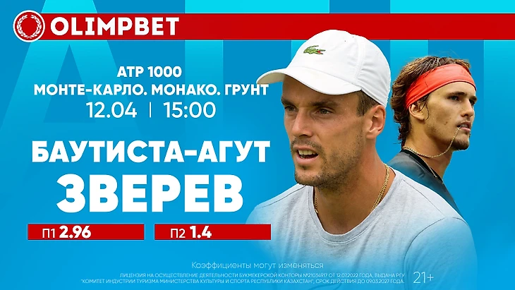 Оба теннисиста в Монте-Карло стартовали с первого круга и оба провели непростые матчи. Баутиста-Агут в трех сетах еле переиграл Филипа Крайиновича (5:7, 7:6, 6:1). А Зверев, который в прошлом году на этом турнире дошел до финала, едва не оступился в матче с казахстанцем Александром Бубликом, не представляющим обычно на грунте серьезной угрозы для топовых соперников (3:6, 6:2, 6:4).