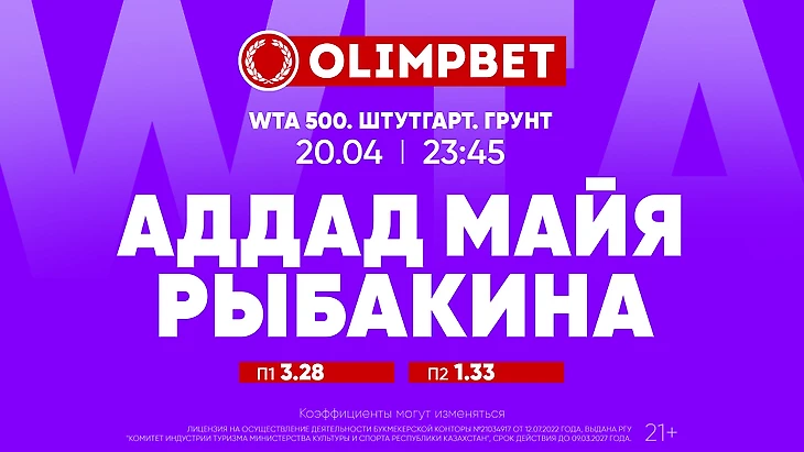 Самый популярный букмекер Казахстана считает, что сильнейшая теннисистка страны без труда выйдет в третий круг, где ее ожидает Онс Жабер из Туниса – П1 – 3.28, П2 – 1.33. И даже если Майя сможет навязать Рыбакиной борьбу, она выиграет максимум один сет – ставка на счет 1:2 – 3.85.