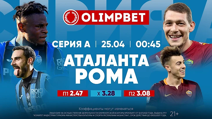 Серия А. 31-й тур. «Аталанта» – «Рома». 25 апреля, 00:45 (время Астаны)