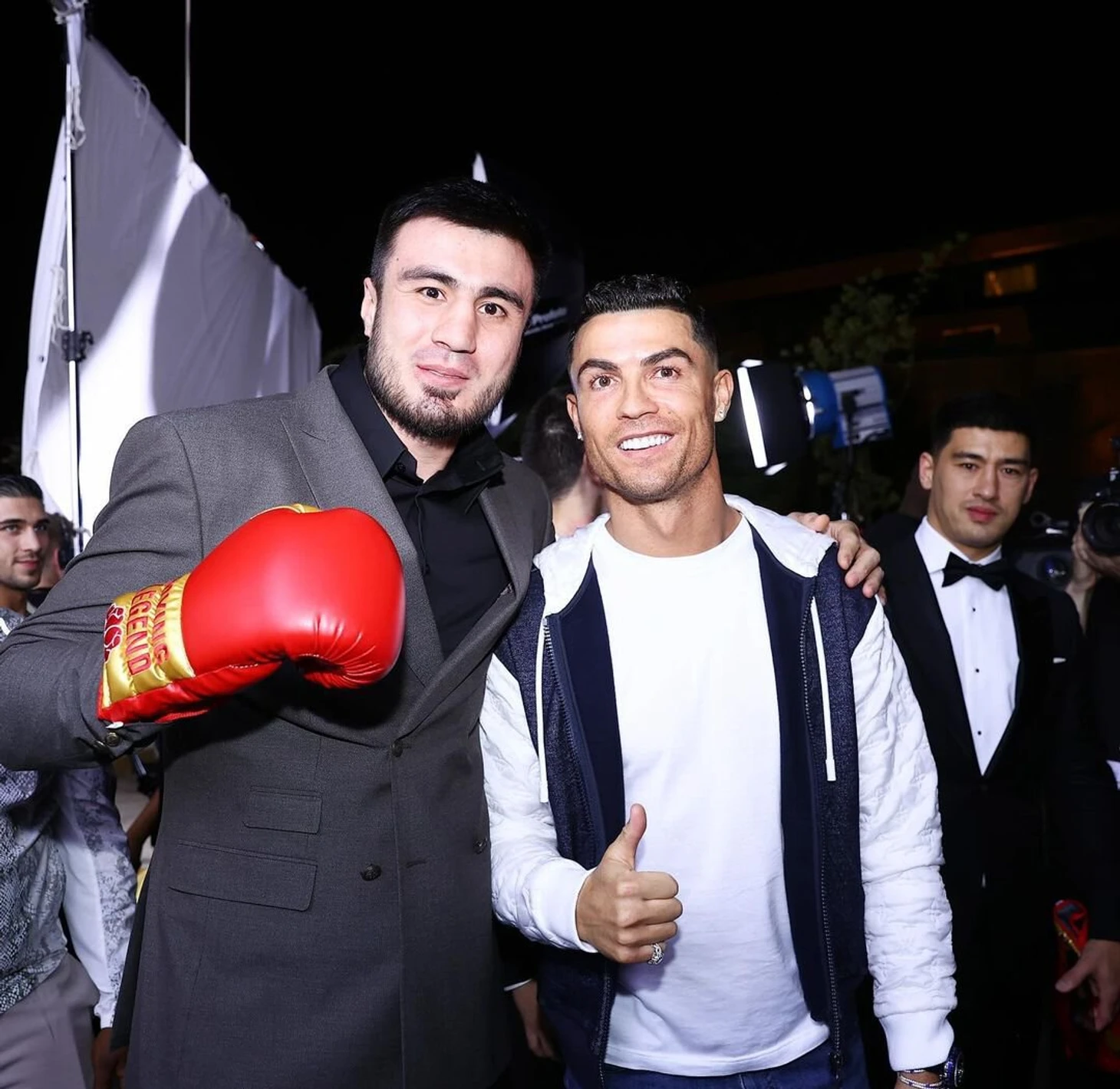 Узбекистанский боксер супертяжелого веса Баходир Джалолов перед боем Тайсона Фьюри с Фрэнсисом Нганну встретился с португальским футболистом Криштиану Роналду.