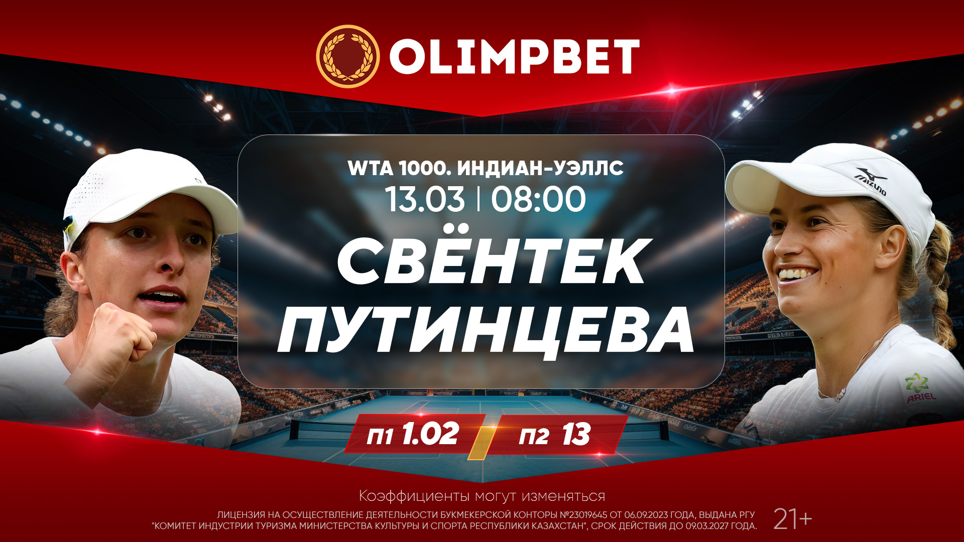 Эксперты Olimpbet считают, что Свентек однозначно выйдет в четвертьфинал – П1 – 1.02, П2 – 13. А вот самый высокий коэффициент предлагается на то, что Путинцева отдаст именитой сопернице лишь один сет и выиграет встречу – 25.