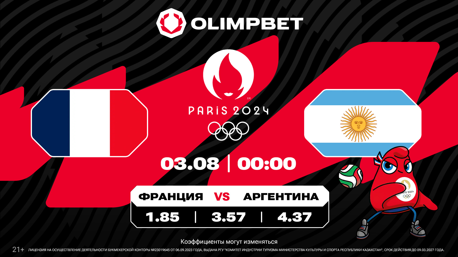 А в личном сражении эксперты Olimpbet больше верят в хозяев олимпийского турнира: П1 – 1.85, Х – 3.57, П2 – 4.37. Причем букмекер № 1 в Казахстане полагает, что франко-аргентинский четвертьфинал с большой долей вероятности может стать «верховым»: Тот (2.5) М – 1.74, Б – 2.1.