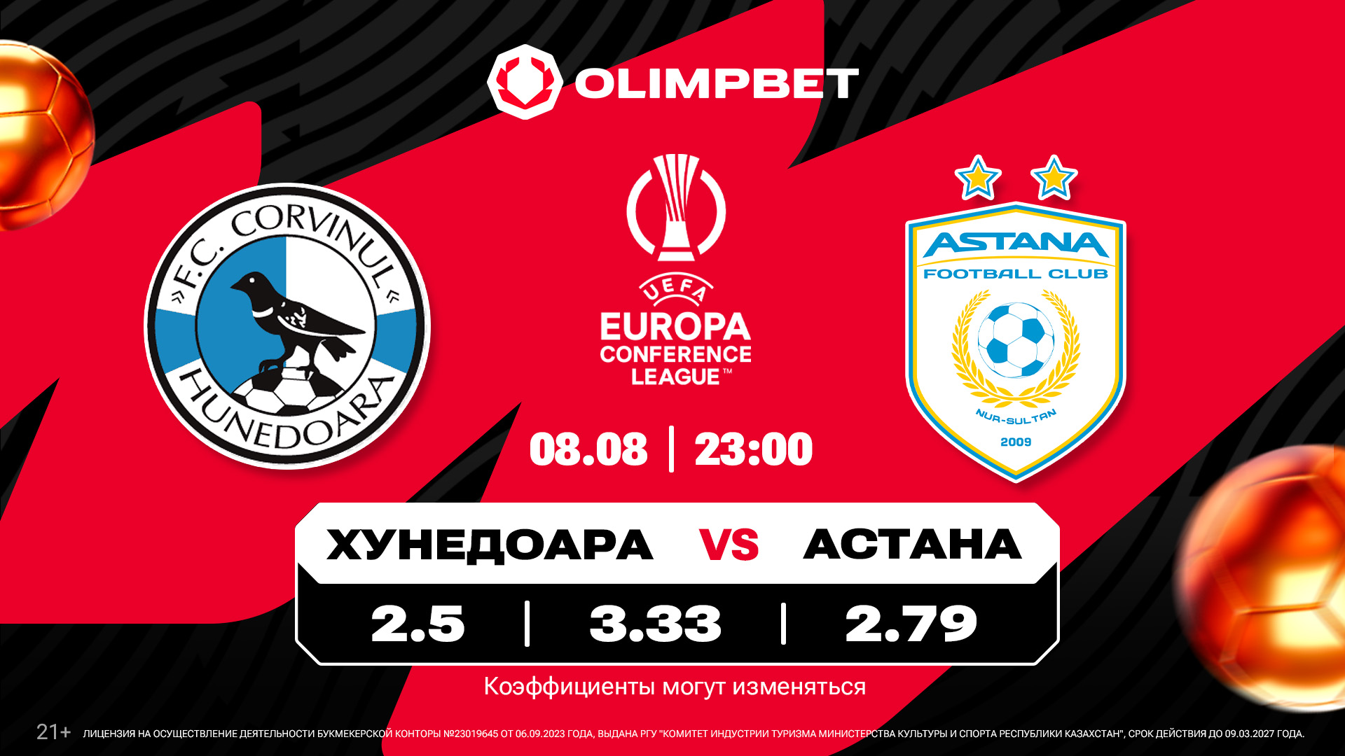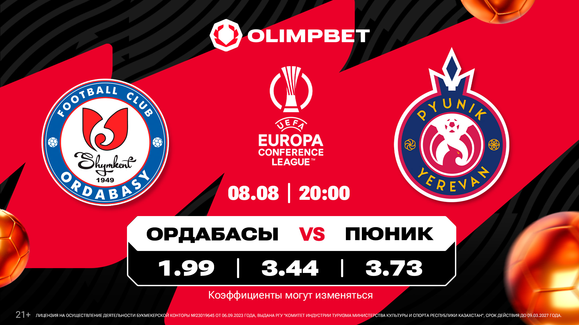 «Ордабасы» (Шымкент, Казахстан) – «Пюник» (Ереван, Армения). 8 августа, 20:00 (время Астаны).Навстречу друг другу эти соперники шли очень похожим образом. И «Ордабасы», и «Пюник» – действующие чемпионы своих стран, поэтому логично, что оба они международный сезон начали с главного еврокубка.Однако представители Казахстана и Армении завершили путь по Лиге чемпионов на первом же барьере: «Ордабасы» уступил «Петрокубу» из Молдовы, «Пюник» – «Динамо» из Минска. Примечательно, что в каждом из этих двухраундовых противостояний был забит всего один мяч.Вылетев из квалификации ЛЧ, оба клуба отправились во второй отборочный этап Лиги конференций, где и те, и другие встретили ожесточенное сопротивление со стороны не самых статусных команд. Шымкентцы одолели «Дифферданж» из Люксембурга лишь в серии пенальти, а клуб из Еревана прошел северомакедонскую «Стругу» благодаря голу, забитому на шестой компенсированной минуте ответного матча.В их очном споре эксперты Olimpbet видят фаворитом казахстанскую команду, причем не только в домашнем матче: П1 – 1.99, Х – 3.44, П2 – 3.73, но и по итогам обеих встреч: проход «Ордабасы» – 1.71, проход «Пюника»  – 2.08.Добавим, что домашним поле в первом матче для «Ордабасы» будет условно, шымкентцы примут соперников на «Центральном» стадионе Алматы, где букмекер № 1 в Казахстане не ждет результативного футбола: Тот (2.5) М –1.69, Б – 2.11.Первый прогноз застрахован. Акция «100% ЖЕҢІС!» – для новых игроков Olimpbet. Букмекер №1 в Казахстане вернет сумму первой ставки (до 100 000 тенге), если она не сыграет. Подробности – на странице акции. «Хунедоара» (Корвинул, Румыния) – «Астана» (Астана, Казахстан). 8 августа, 23:00.Семикратным чемпионам Казахстана предстоит сразиться с очень необычным соперником. Дело в том, что клуб «Хунедоара» был расформирован в 2004-м году, а возрожден 17 лет спустя.В минувшем сезоне эта команда сенсационно выиграла Кубок Румынии, при этом выступает она во втором по силе дивизионе страны.Получив право стартовать в квалификации Лиги Европы, «Хунедоара» в первом отборочном раунде оказалась сильнее венгерского «Пакша», а во втором румынская команда оказала достойнейшее сопротивление намного более именитой «Риеке» из Хорватии.Да, аналитики Olimpbet полагают, что по сумме двух матчей шансы «Астаны» на выход в следующую стадию турнира выглядят заметно предпочтительнее: проход «Хунедоары» – 2.12, проход «Астана» – 1.68.Однако в первой игре самый популярный букмекер страны явного фаворита не видит, отдавая даже некоторое преимущество румынскому коллективу: П1 – 2.5, Х – 3.33, П2 – 2.79. Пополнить счет у крупнейшего букмекера страны можно в популярных банковских приложениях (Kaspi.kz, Forte, BCC.kz и других). Для этого нужно пройти в «Платежи», открыть вкладки «Все», «Другое» и найти в букмекерских конторах Olimpbet.kz