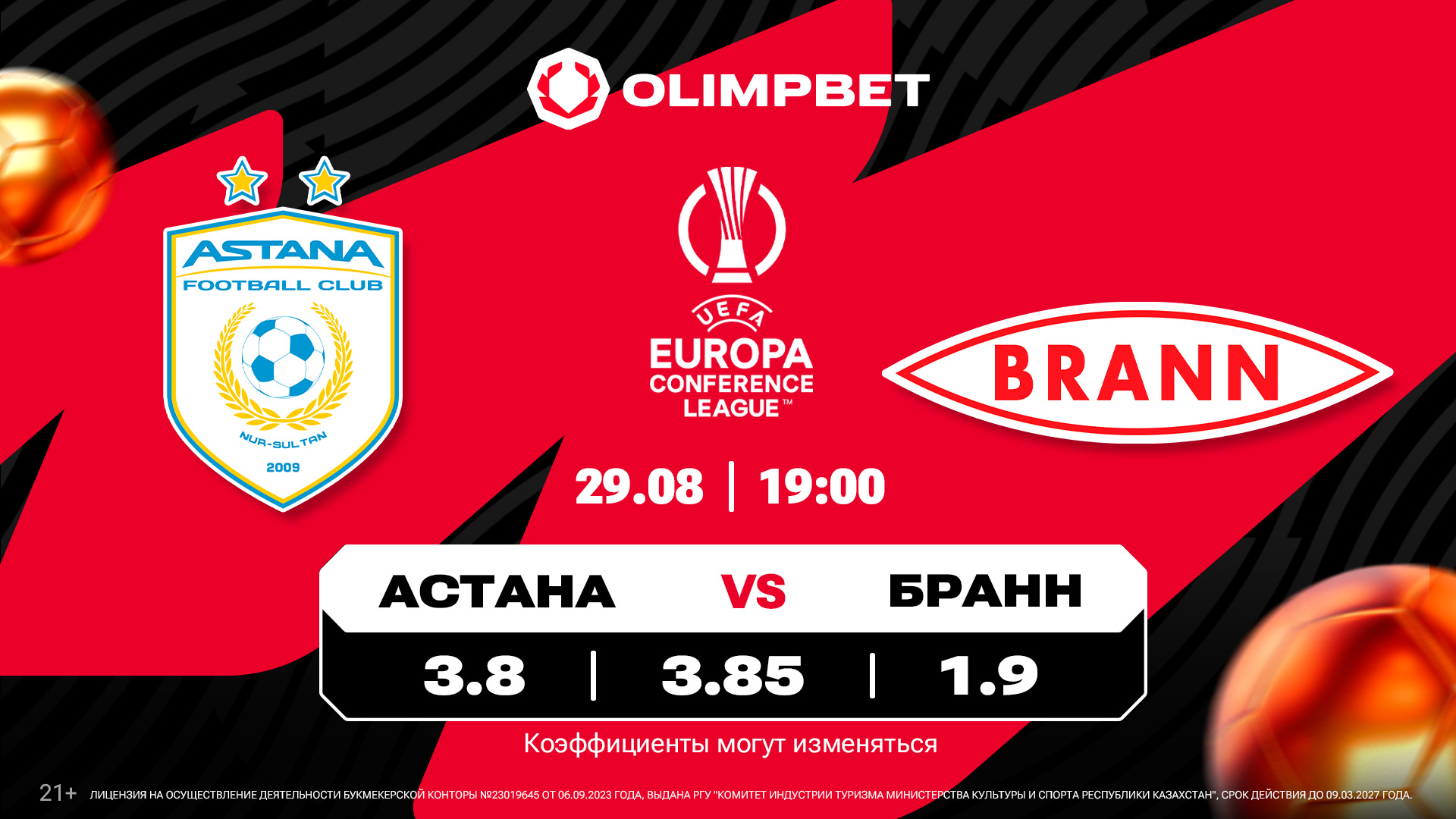 Лига конференций. «Астана» (Астана, Казахстан) – «Бранн» (Берген, Норвегия). 29 августа, 19:00 (время Астаны)