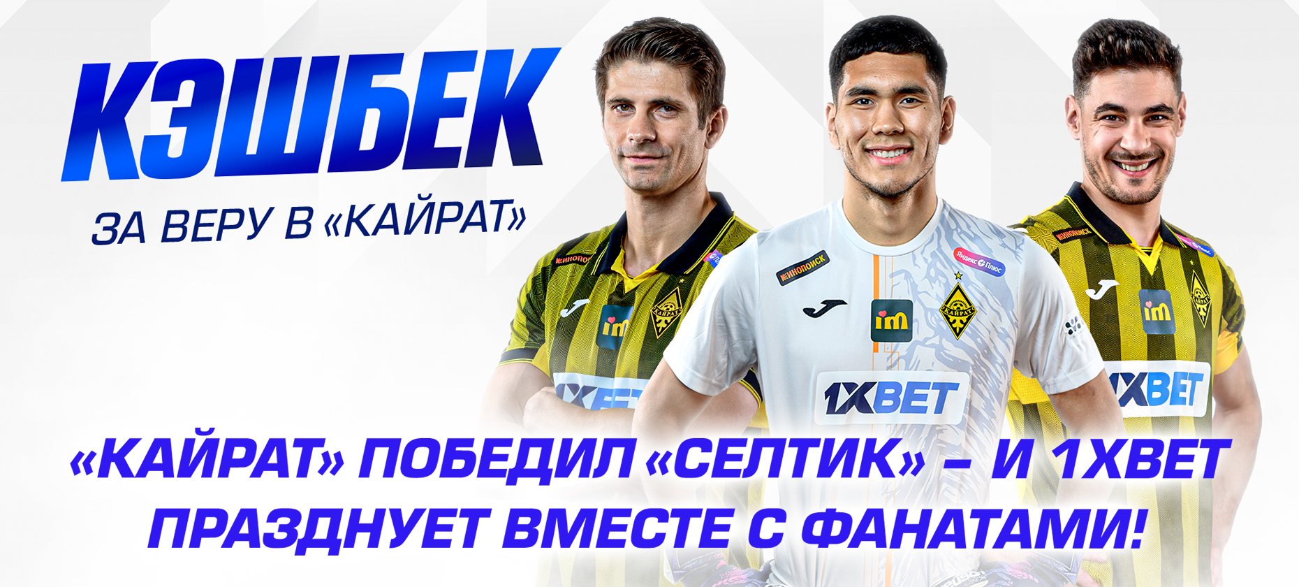 Все ставки на победу «Кайрата» в основное время — с возвратом. Деньги возвращаются прямо на баланс. ФК «Кайрат» и 1XBET — всегда рядом с фанатами.
