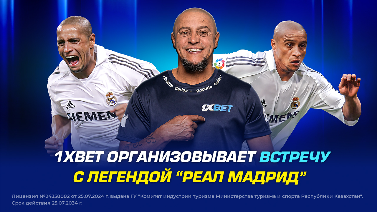 1XBET / Генеральный партнер ФК “Кайрат” планирует порадовать всех болельщиков мадридского “Реала”. Именно ты можешь стать тем счастливчиком, кто встретиться лично с легендарным Роберто Карлосом. Амбассадор компании 1XBET посетит Алматы в составе делегации испанского гранда, а между делом уделит время казахстанским болельщикам.