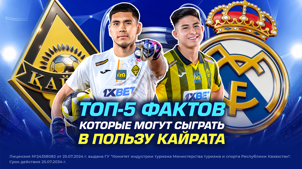 Всё ещё сомневаешься в «Кайрате»? Самое время воспользоваться акцией «Ставка без риска» от 1XBET! Теперь кэшбэк увеличен: компания вернёт до 50 000 тенге на аккаунт в случае неудачного прогноза на матч «Кайрат» – «Реал».