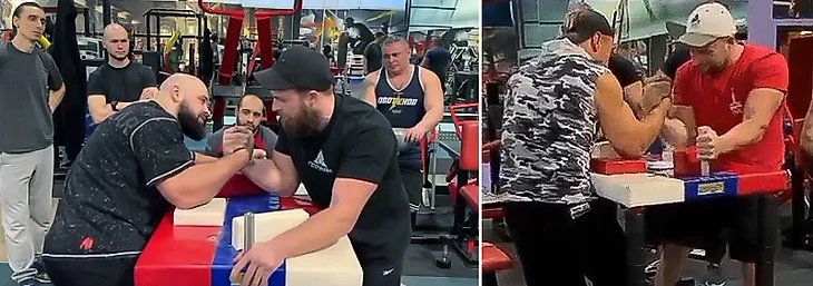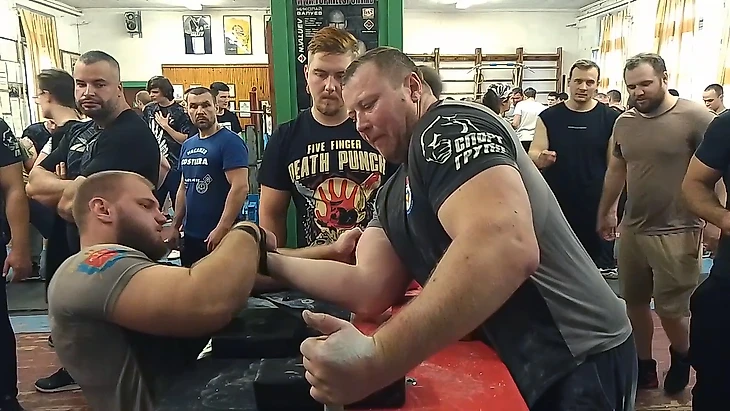 Но одно дело спарринг, а совсем другое соревновательный армфайт. Здесь так легко расправляется с тяжами, как у Дима делает на тренировках, уже может и не получится! Владимира, например, его грозный, но маленький соперник похоже абсолютно не пугает. Он даже предложил Диме побороться с ним в его коронку, в крюк! «Во мне сейчас 101кг. Форма хорошая, в целом не жалуюсь» - признался Владимир.