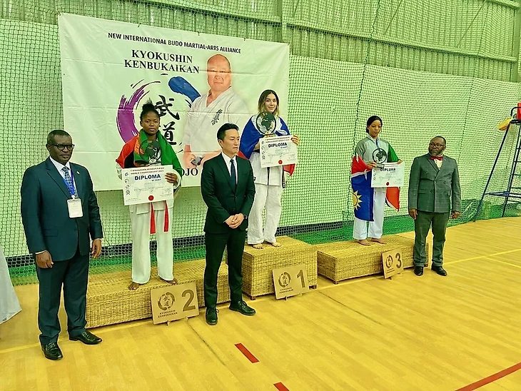 «Турнир проводила Международная Федерация «Киокушин Кенбукайкан», и это был первый в истории чемпионат мира по карате во всей Африке, - рассказывает Полина. – В нем приняли участие 19 стран и более 400 человек. – В карате-киокушинкай есть дисциплины кумитэ – бой на татами, спарринг с реальным противником, и ката - последовательность различных техник, ударов и стоек, которая имеет строгую форму, своего рода «боевой танец». В ката есть как сольные, так и групповые выступления, я участвовала в тех и других, а в кумитэ – нет: я не дерусь».