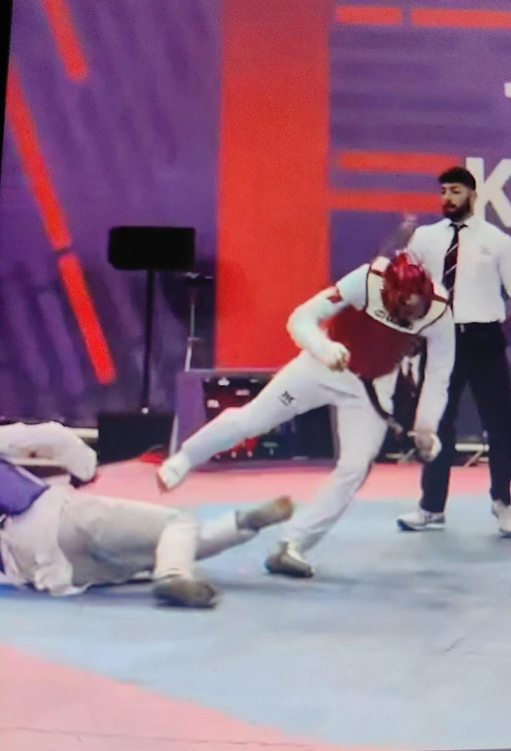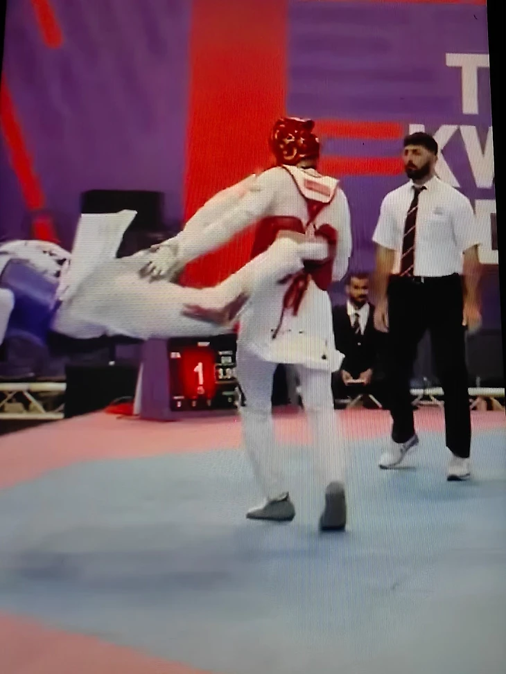Мне попался на глаза ролик из тхэквондо, но я не знаю, как зовут участников боя. Идеально и роскошно вышел из трудной ситуации боец в синем. После того, как красный боец нанёс удар ногой, синий сначала ударил уширо-гери (удар внутренней частью ноги в противоположное ухо от левой ноги), а потом в прыжке перевернулся и «вертушкой» пробил по голове своего соперника, тот упал и не двигался секунд 5-6! В-общем, очень советую пересмотреть поединок полностью - он должен быть взрывным и интересным! Посмотрите сами - ведь круто же!