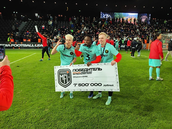 Чек на эту сумму передал «дротам» президент МФЛ Николай Осипов прямо на поле.