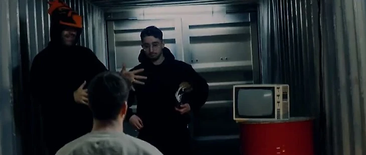 Бывший защитник «Барселоны» сидит привязанным к стулу. К нему из телевизора обращается некто в маске.