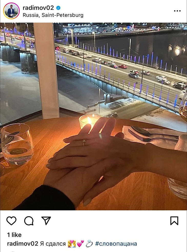 «Я сдался 👩❤️👨💕💍», – написал Радимов в инстаграме и добавил хештег #словопацана.