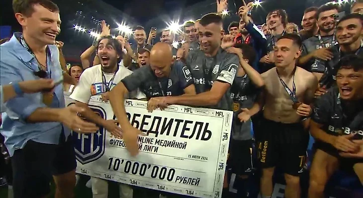 На церемонии награждения команде, помимо кубка Медиалиги, вручили денежный сертификат на 10 миллионов рублей.