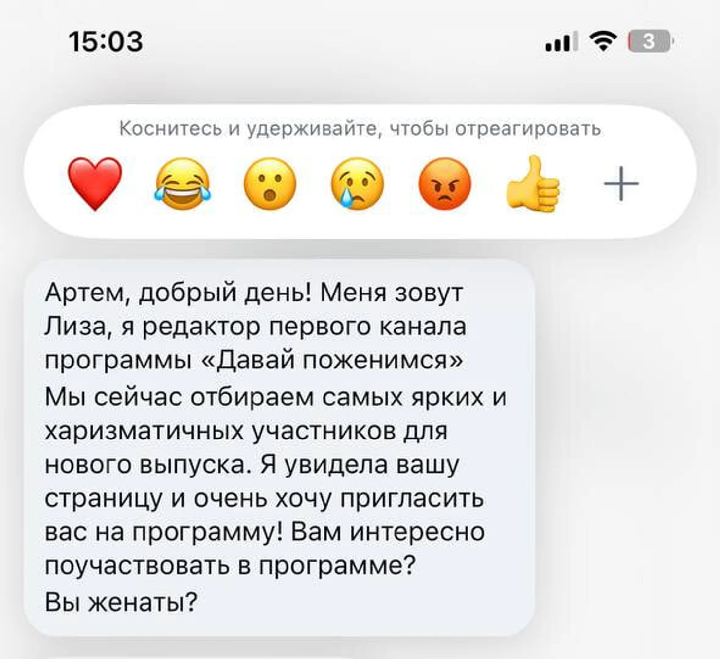 Артема Мингазова пригласили на съемки шоу «Давай поженимся».