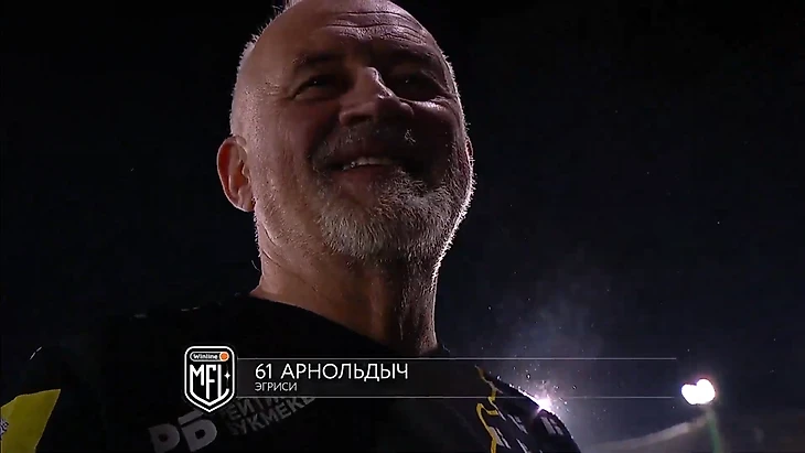 В старте «Эгриси» на позиции центрфорварда вышел выдающийся спортивный журналист Сергей Микулик. На футболке у него вместо фамилии было написано «Арнольдыч» и 61-й номер – это, кстати, его возраст.
