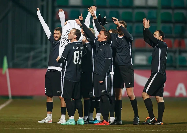 Первый матч – против сборной фиферов в 2017-м. Организовал игру блогер Кефир. За «Матч ТВ» сыграли Павел Занозин (капитан), Александр Шмурнов, Роман Трушечкин, Дмитрий Жичкин, Роман Нагучев и Дмитрий Шнякин. Да-да, тогда играли только работники телеканала. Их хватило даже на соперника: Карен Адамян сыграл за фиферов, потому что у них не набрался состав. Комментаторы победили (4:3). Увы, автора первого гола в истории ФК «Матч ТВ» определить невозможно – момент не попал на видео.
