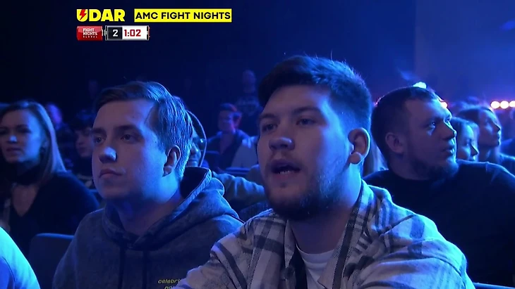 Во втором и третьем раунде ситуация не менялась: Сибскана подсел физически, очень много пропускал, а Кузьмин пер на него танком. С трибуны грустно наблюдал президент «Амкала» Герман Эль Класико.