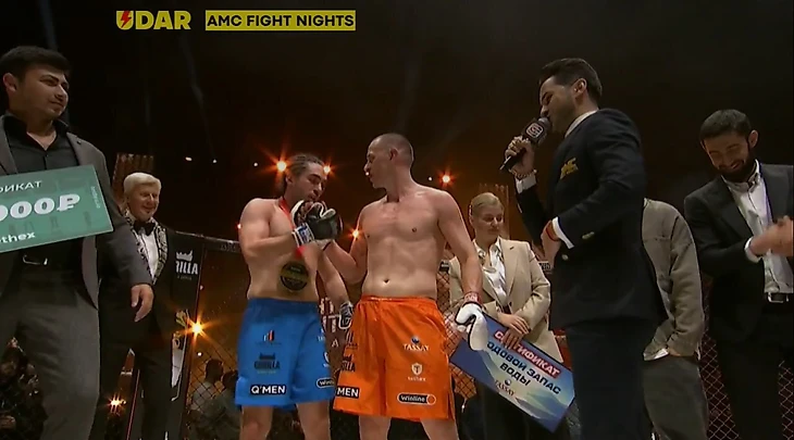 Сибскана подчеркнул клубную принадлежность: вышел под гимн «Амкала», обмотанным во флаг своей команды. Легкий любительский рэп в зале для смешанных единоборств – это что-то новое.