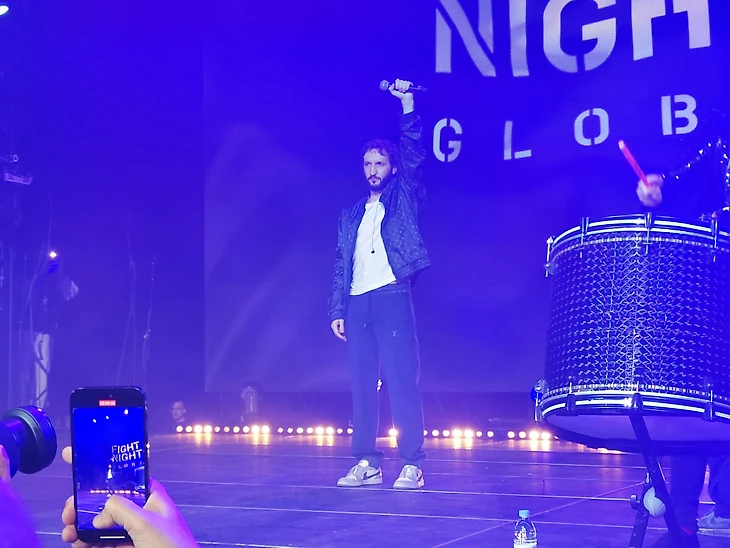 Партер преимущественно заполнился зрителями, которые пришли, чтобы поддержать Сибскану и Райзена. Например, приехал Крап из 2Drots (который, по ожиданиям, планировал вызвать на бой блогера и медиафутболиста Володю XXL – тот тоже был на стадионе) – его из-за ограждений звали дети, чтобы сфотографироваться.